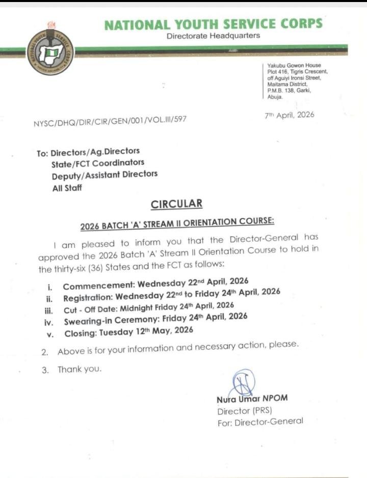 Ready for Camp? NYSC Announces 2026 Batch ‘A’ Stream II Orientation Dates